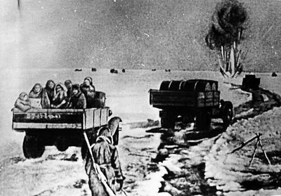 В ноябре 1941 года по ладожскому озеру была проложена ледовая «ДОРОГА